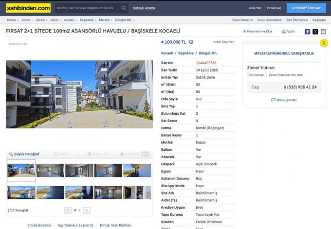 “16 Eylül'de 9,5 milyon liraya ilana girilen bir taşınmazın yalnızca 18 gün sonra 13 milyon liraya yükseltildiği tespit edilmiştir. Başka bir ilanda, iki hafta içinde 1 milyon liralık artış belirlenmiştir. Bir diğer ilanda ise sadece bir hafta içinde 1,5 milyon liraya yakın fiyat artışı yapılmıştır. Bu üç ilan sahibinin her birine, genel ekonomik verilere aykırı fahiş fiyat artışı yaptıkları gerekçesiyle 150 bin lira para cezası uygulanmıştır.”
