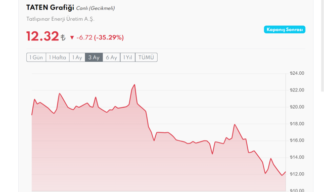 6 Kasım’da 23 TL seviyesinde bulunan TATEN hissesi, 29 Aralık itibarıyla 11,87 TL’ye kadar geriledi. Böylece hisse, yalnızca 53 günde yaklaşık yüzde 48,4 oranında değer kaybetmiş oldu.