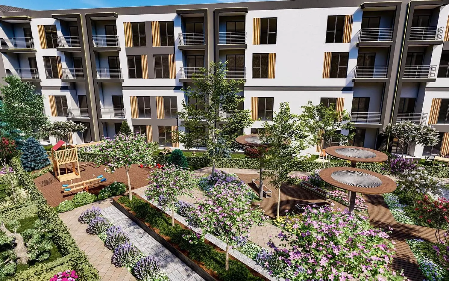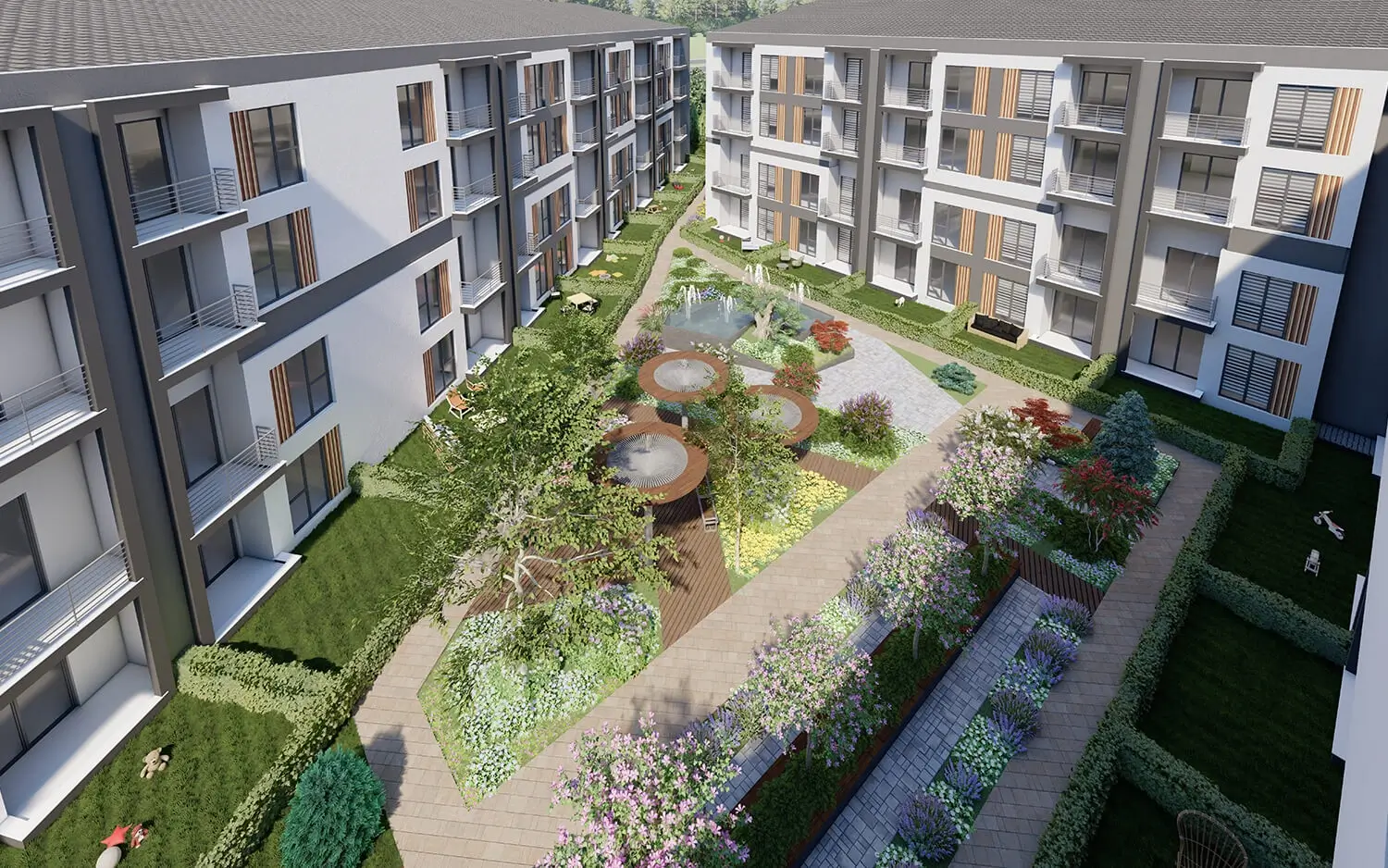 Projede kapalı otopark, çocuk oyun parkı, yürüyüş yolları gibi donatılarla konforlu bir yaşam alanı hedefleniyor.