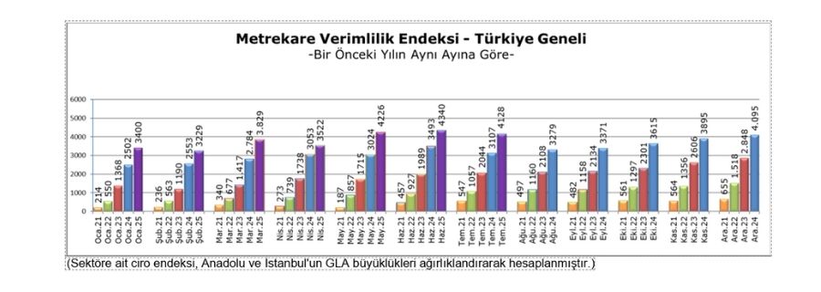 “AVM ciro endeksi 2025 yılı Temmuz ayında, geçen yılın aynı dönemine göre nominal olarak yüzde 32,9 büyüdü. TÜFE enflasyonu ile arındırıldığında ufak oranda da olsa reel daralma kaydedildi. Aylar arası karşılaştırma yapmak mevsimsellikten dolayı pek doğru olmasa da Haziran ayına göre belirgin oranda bir yavaşlama var. Bunu da yaz etkisi ile açıklamak mümkün olacaktır. Kategori bazında bakınca ciddi ayrışmalar dikkat çekiyor.”