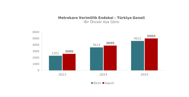 Bir önceki aya göre bakıldığında ise metrekare verimliliği yüzde 8,2 artış gösterdi.