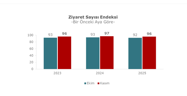 Kasım ayında AVM ziyaretçi sayısı, geçen yılın aynı dönemine göre yüzde 1 geride kalsa da, bir önceki aya göre yaklaşık yüzde 4 artış gösterdi. Bu artış, yılın son döneminde alışveriş trafiğinde kısmi bir canlanmaya işaret etti.