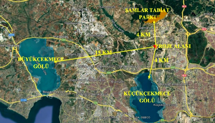 1.700 metre kuzeydoğusunda Başakşehir Çam ve Sakura Şehir Hastanesi’ne,