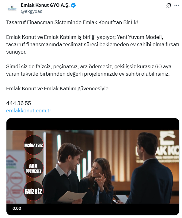 Emlak Konut’un sosyal medya platformu X (Twitter) hesabı üzerinden duyurduğu yeni model, tasarruf finansman sisteminde bugüne kadar görülmemiş bir yenilik olarak dikkat çekiyor.