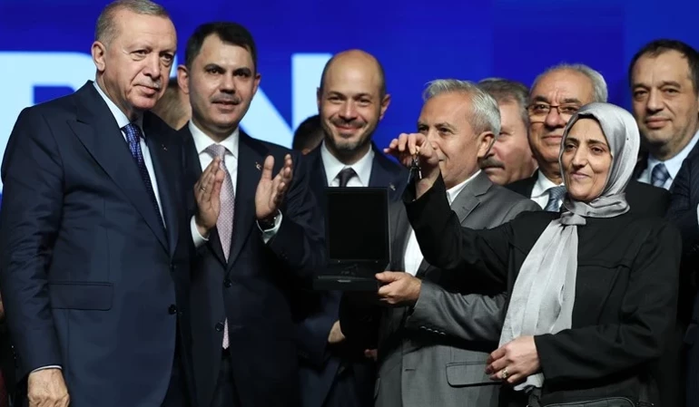Cumhurbaşkanı Erdoğan, “Afetlere dirençli 500 bin yeni yuvayı milletimizin istifadesine sunacağız. Her yıl daha fazla vatandaşımızın uygun şartlarda konuta erişmesini sağlayacağız.” diye konuştu.