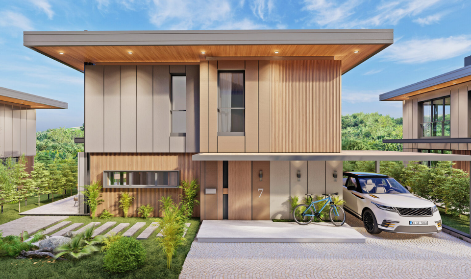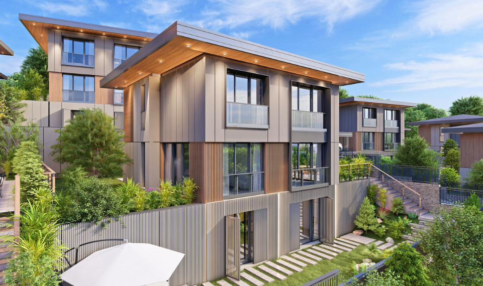 Tüm konutlar geniş pencereler, ferah iç mekanlar ve modern mimari detaylarla tasarlanıyor. 2+1 townhouse’lar 2 banyolu ve özel bahçeli, 4+1 villalar ise 5 banyolu ve 300–400 metrekare genişliğinde bahçelere sahip. Ayrıca her konut için 150–200 metrekarelik hobi bahçeleri sunuluyor.