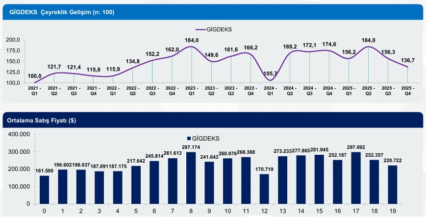 Aynı dönemde GİGDEKS baz puanı 156,3’ten 136,7’ye düşerek, satış hacmindeki zayıflamayı net biçimde ortaya koydu. Endeksteki bu sert düşüş, yabancı yatırımcı talebinde yaşanan yavaşlamanın sürdüğüne işaret etti.
