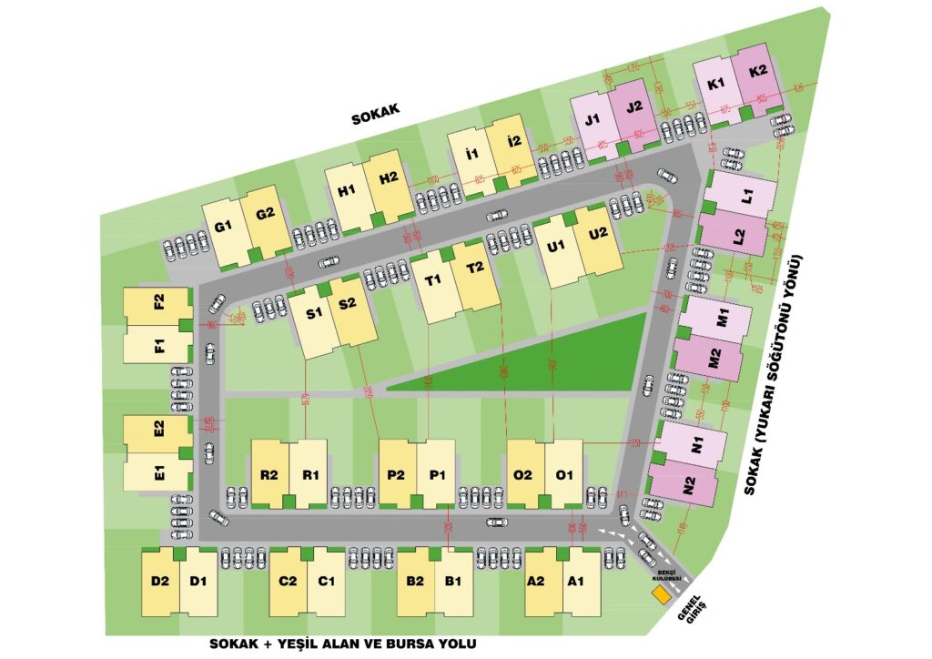 Projede toplam 40 adet müstakil villa yer alıyor. Her villanın bağımsız bahçesi bulunurken, site genelinde güvenli ve kontrollü yaşam anlayışı benimseniyor.
