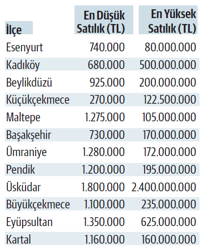 En yüksek kira: 2,25 milyon TL (Beşiktaş)