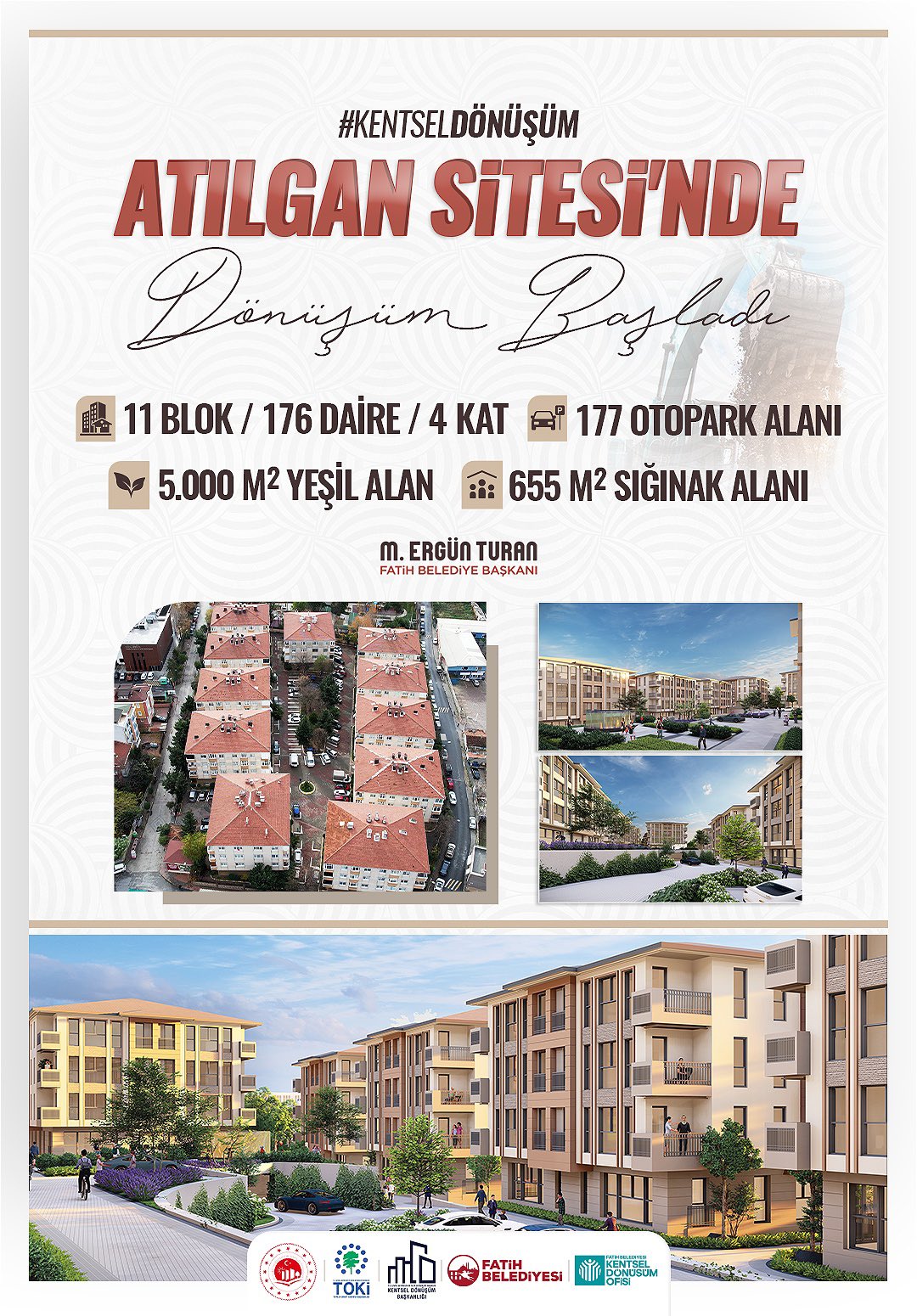 Yerinde dönüşüm kapsamında Atılgan Sitesi’nde 176 dairenin yerine yine 176 daire yapılacak. İlave nüfus artışı olmadan, daha güvenli ve modern yaşam alanları bölge halkına sunulacak.