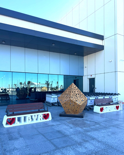 Libya’nın Sirte kentinde hayata geçirilen ve bölgenin ulaşım altyapısı açısından stratejik önem taşıyan Sirte Körfezi Uluslararası Havalimanı’nda, iç ve dış mekânlarda İSTON’un kent mobilyaları kullanıldı. Proje kapsamında, havalimanının ana giriş alanı için 3D beton yazıcı teknolojisi ile üretilen ve üzerinde “Sirte” ile “Libya” ifadeleri yer alan, projeye özel tasarım banklar dikkat çekti.