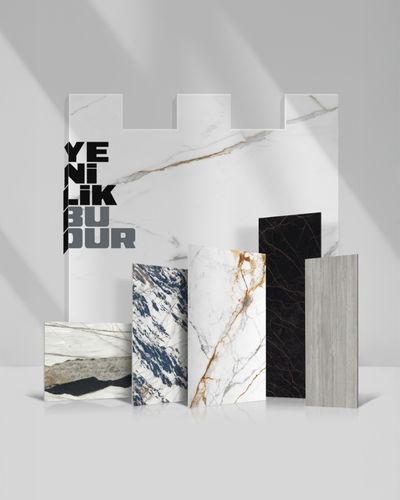 Kalebodur’un büyük ebat porselen plakaları, estetik ve performansı bir araya getirerek mekanların başrol oyuncusuna dönüşüyor. Yüzeylere kazandırılan sofistike doku, desen bütünlüğü ve ışıltı sayesinde mimarlar projelerinde özgün ve etkileyici bir imza atabiliyor.