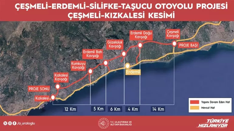 Mersin ile Konya arasındaki karayolu ulaşımını hızlandıracak Çeşmeli–Kızkalesi Otoyolu Projesi’nde finansman süreci tamamlandı. Ulaştırma ve Altyapı Bakanı Abdulkadir Uraloğlu, yatırım bedeli 1 milyar 263 milyon euro olan projede 884 milyon euronun 8 farklı finans kuruluşundan sağlanan kredi ile karşılanacağını açıkladı.