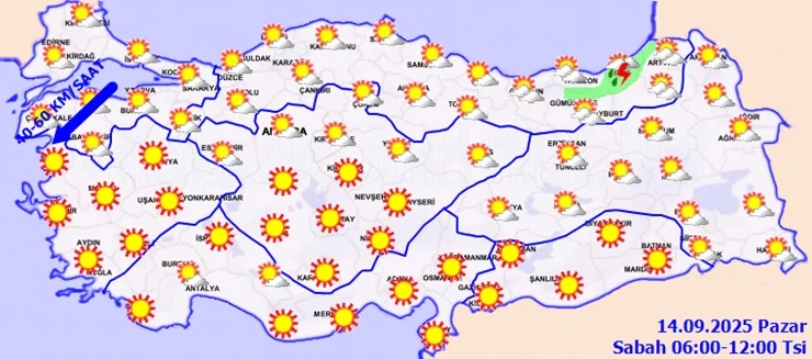 Türkiye Genelinde 14 Eylül 2025 Hava Durumu