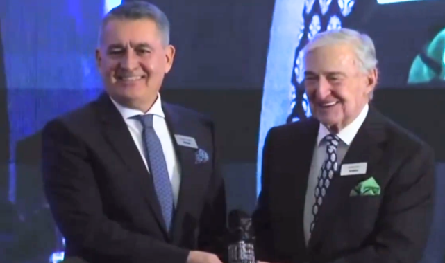 Orhan Turan'ın konuşması, salonda bulunanlar tarafından ayakta alkışlandı. Rahmi Koç. daha sonra Orhan Turan'a bir plaket sundu.