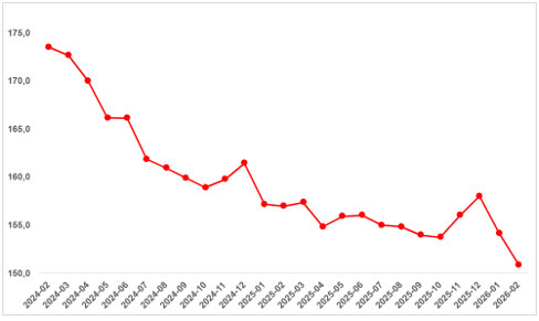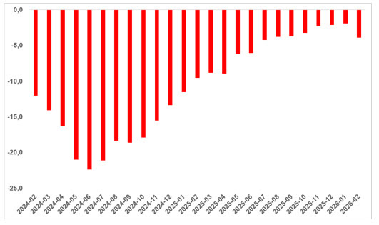 Şubat ayında reel konut fiyat endeksi bir önceki aya göre yüzde 2,1 geriledi. Ocak ayında yeniden başlayan düşüş eğiliminin şubat ayında da devam ettiği görüldü. Bu tablo, konut piyasasında reel anlamda değer kaybının sürdüğüne işaret etti.