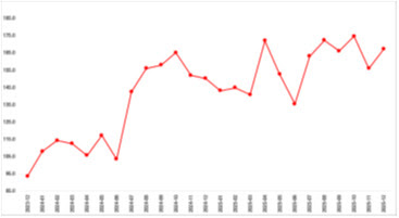 Kiralık konut talebinde yükselişKiralık konut talep göstergesi aralık ayında bir önceki aya göre yüzde 1,3, bir önceki yılın aynı ayına göre yüzde 6,7 artış gösterdi. Bu artış, kiralık konut talebinin mevsimsel dinamikleri çerçevesinde değerlendirildiğinde, nisan-temmuz döneminde yükselen ve yılın son çeyreğinde zayıflayan talebin aralık ayı itibarıyla yeniden yükselişe geçtiğini göstermektedir.Şekil 4: Talep göstergesi (2020 Şubat=100)