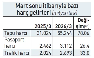 Öte yandan Maliye’nin gayrimenkul satışlarına yönelik sıkı denetimleri, tapu harcı gelirlerine de güçlü yansıdı.