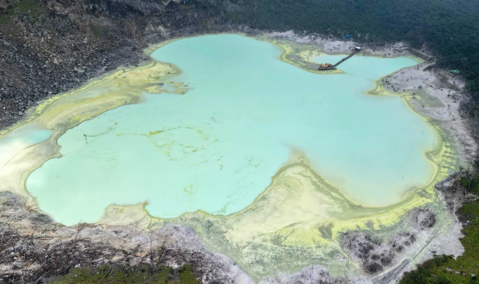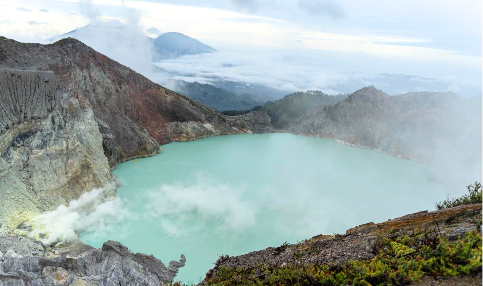Der Ijen Komplex hat einen eingeschlossenen Kratersee der als größter übersäuerte See der Welt gilt.