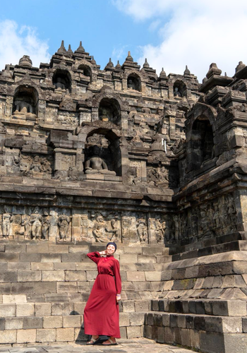 Von diesen Tempelanlagen habe ich eine besucht, den Borobudur Tempel, die größte buddhistische Tempelanlage der Welt. Die Pyramide ist von kolossaler Größe und nicht mit bloßem Auge abschätzbar und erstreckt sich über mehrere Stockwerke mit einer großen Stupa an der höchsten Etage. Jedes Stockwerk ist mit unzähligen Buddha-Statuen geschmückt, von denen leider nicht alle überlebt haben.